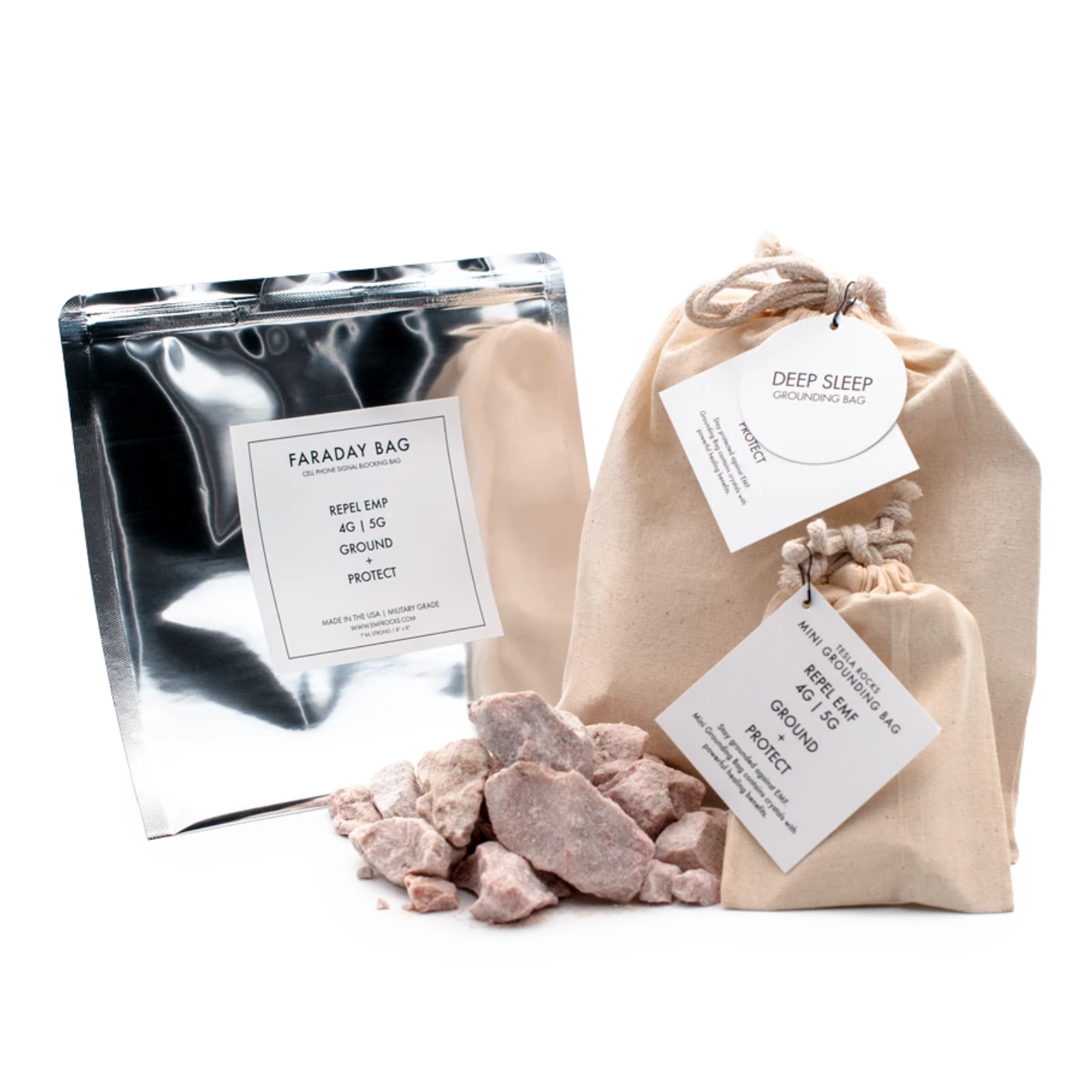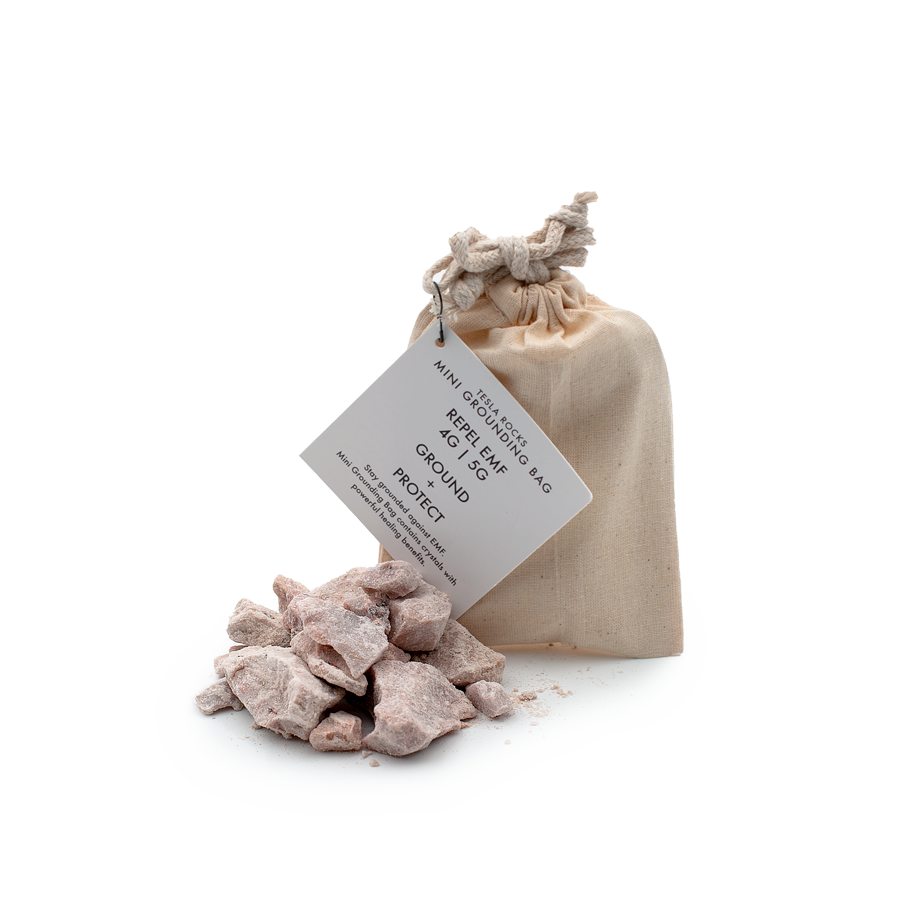 The Grounding Bag is used as-is to repel man-made EMF, while transmitting the natural healing pulse of the earth for a deep, uninterrupted sleep and cellular renewal. It is filled with 1lb. of hand-mined, pink Tesla Crystals sealed within a military grade faraday bag with a natural moisture content to further amplify its effects.